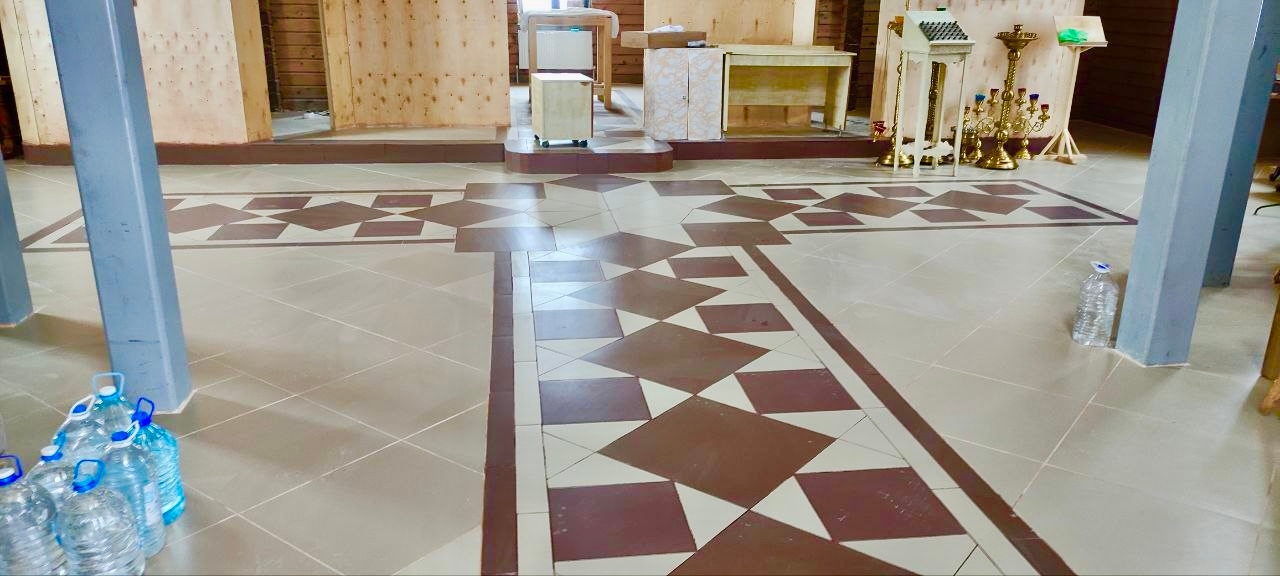 Завершены работы по укладке плитки в Храме Вознесения Господня.