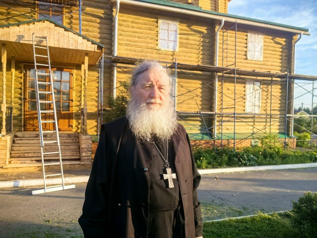 Снаружи храм уже начал преображаться — но внутреннее убранство из тех же бревен, и дерево там тоже требует срочного ремонта.