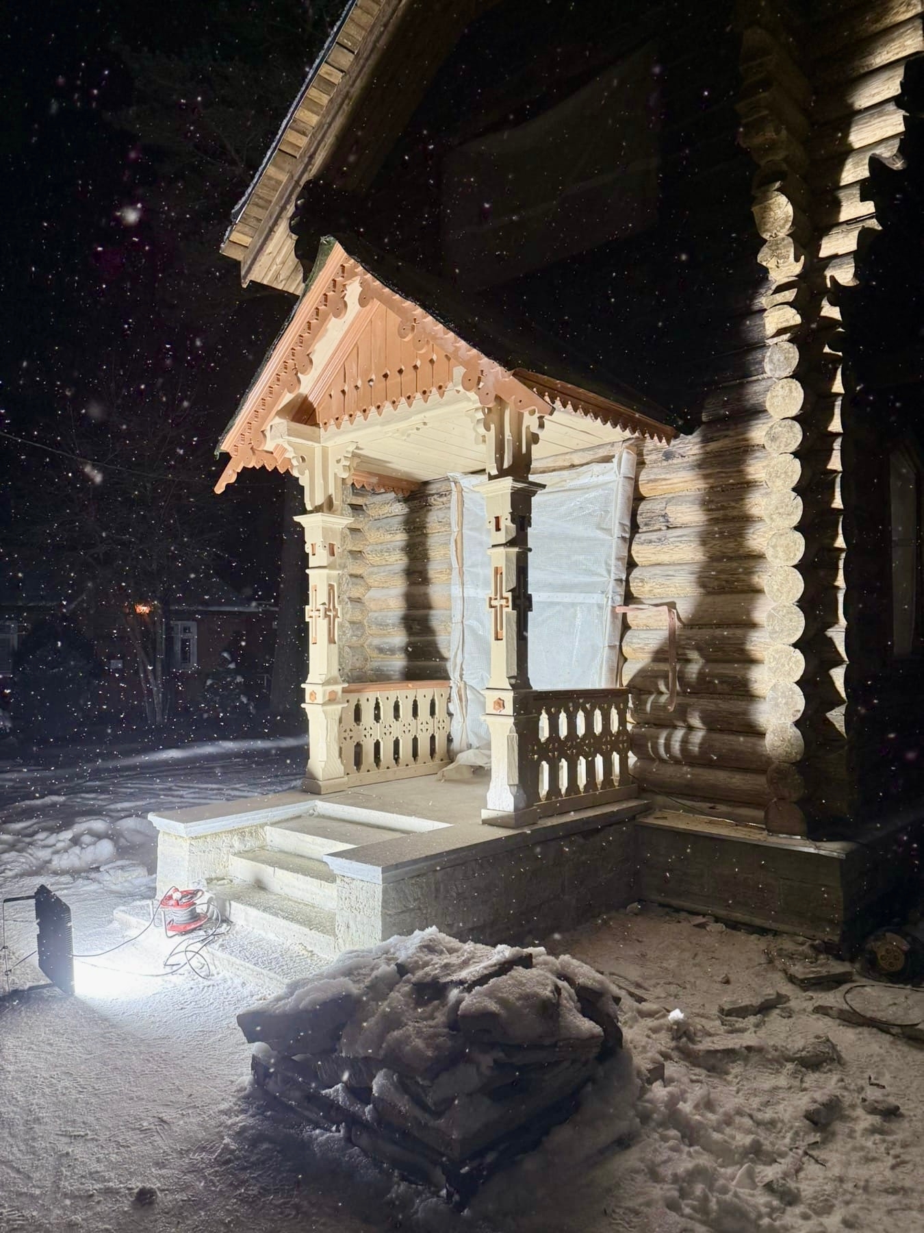 Мы рады поделиться с вами фотографиями проделанных работ. Было установлено новое крыльцо и укреплён фундамент — храм постепенно обретает прочность и свой прежний облик. Уже сейчас видно, как красиво и достойно он смотрится.