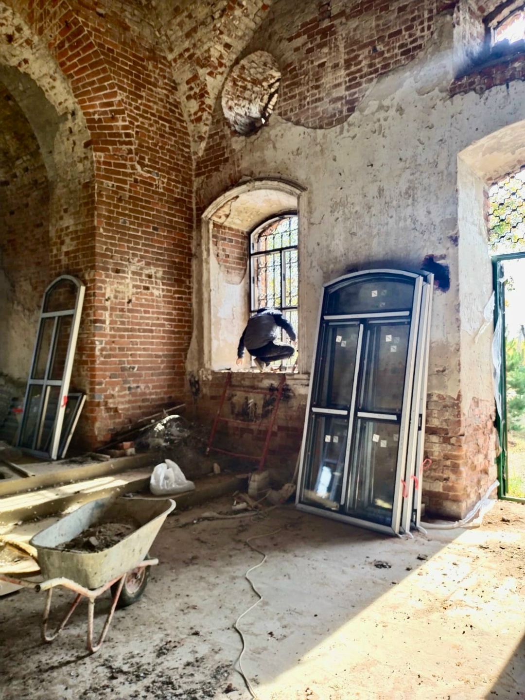 С Божьей помощью здесь сделан важный шаг — в зимнем храме вставлены окна.