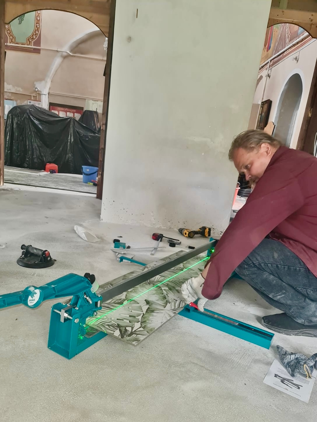 Залили полы и положили плитку в храме Рождества Иоанна Предтече в селе Павловское, Суздальский район, Владимирской области